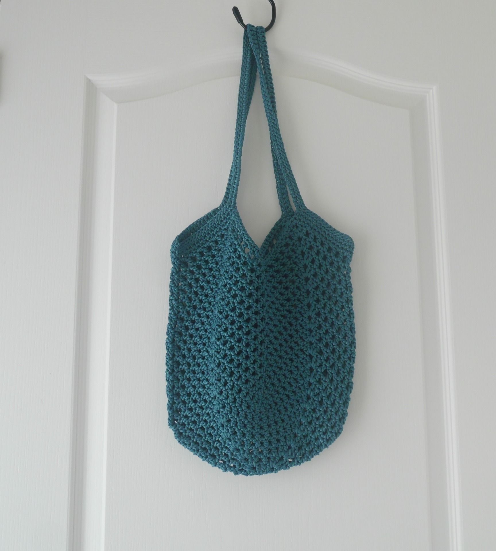 Sac filet au crochet BLEU canard